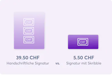 Sparen Sie 34 CHF pro elektronisch signiertem Dokument. Kein Scannen, Drucken, zur Post rennen und tagelanges Warten mehr.
