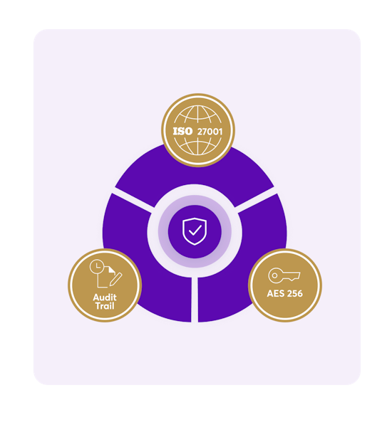Die Systemarchitektur von Skribble ist nach ISO 27001 zertifiziert. Jede Transaktion wird mit einer fälschungssicheren AES-256-Verschlüsselung geschützt.