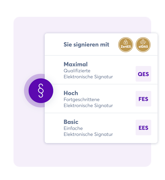 Die qualifizierte elektronische Signatur (QES) ist die einzige E-Signatur, die der handschriftlichen Unterschrift gesetzlich gleichgestellt ist.